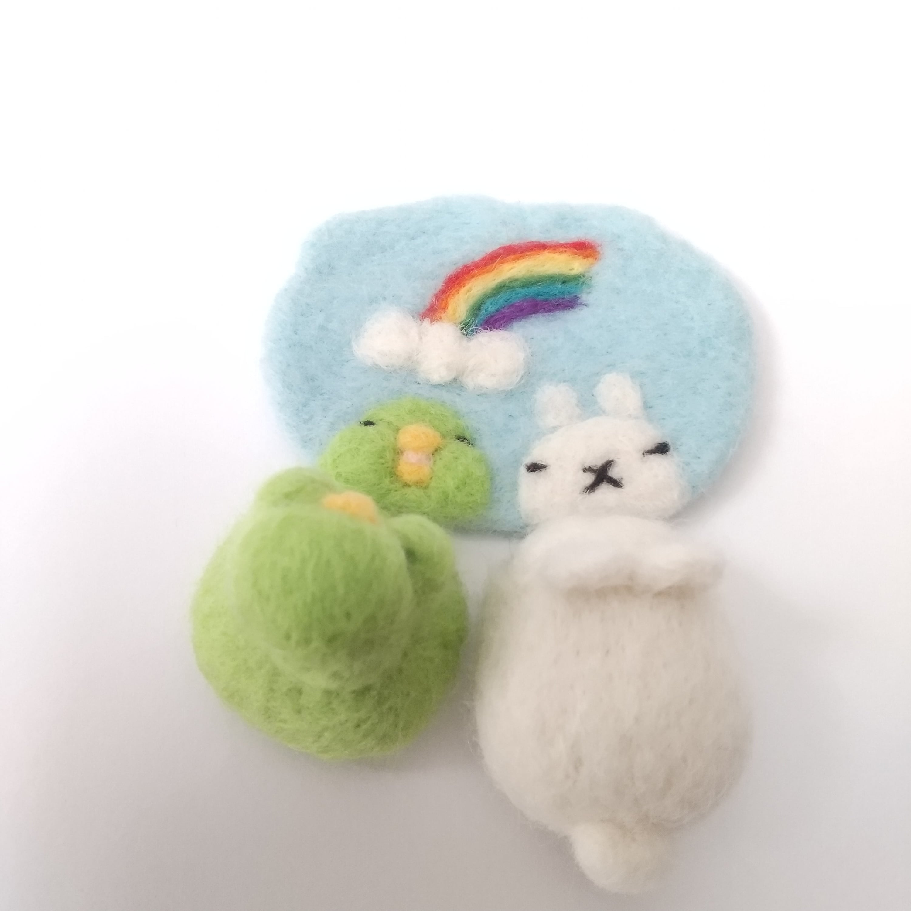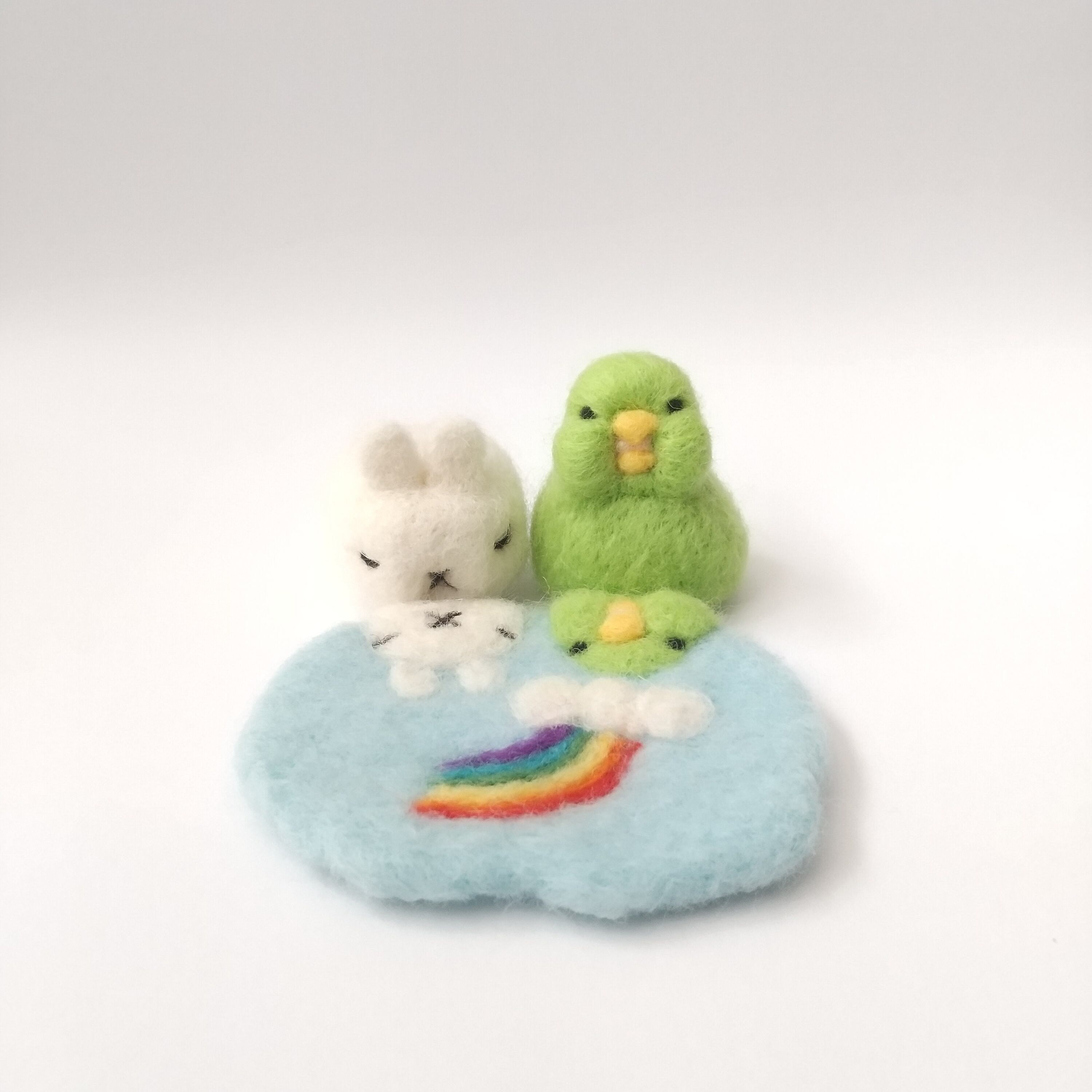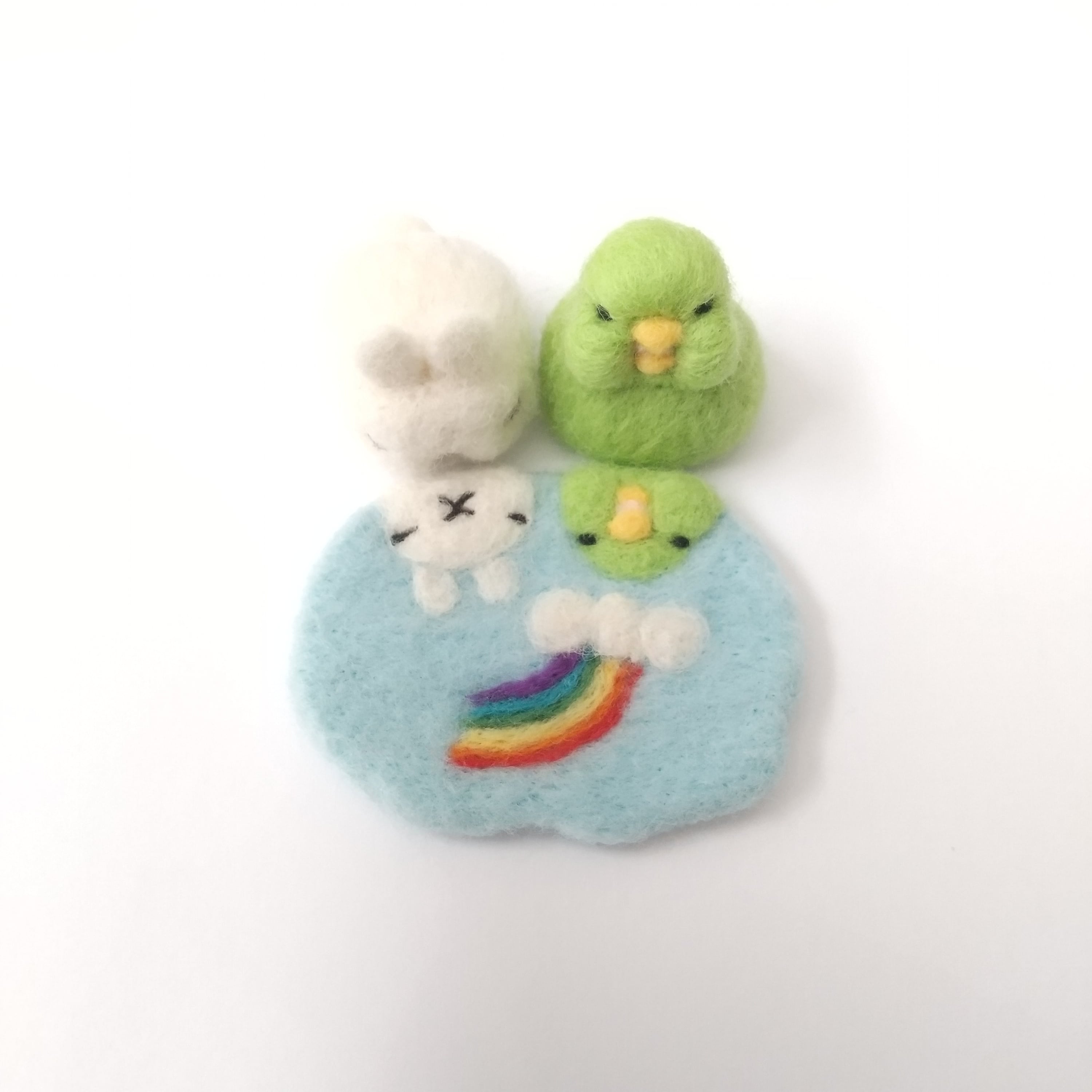 羊毛フエルト ウサコフ&太 水たまりの空(虹)