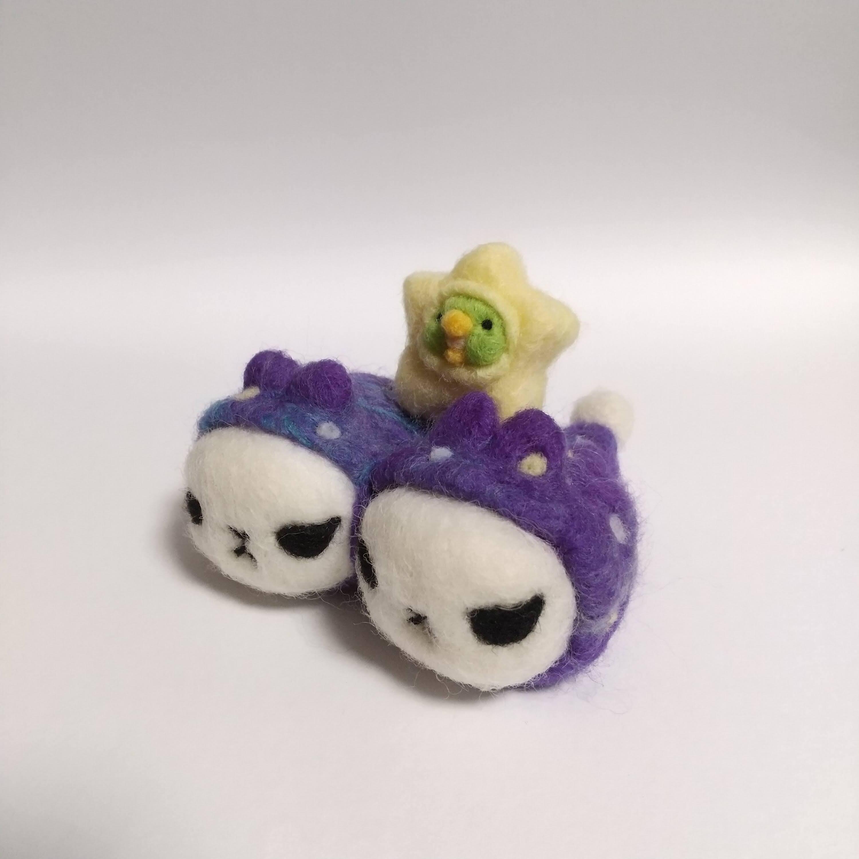 取扱いについて:羊毛作品は観賞用です。ひとつひとつ丁寧に作ってはおりますが、羊毛の特性上強くひっぱったり擦ったりすることで、形が崩れたり毛が乱れる可能性がありますので、お取り扱いにはご注意願います(少しの毛羽立ちであれば、市販のニードルで毛を埋め込むか、ハサミで毛を整えることで直ります)。