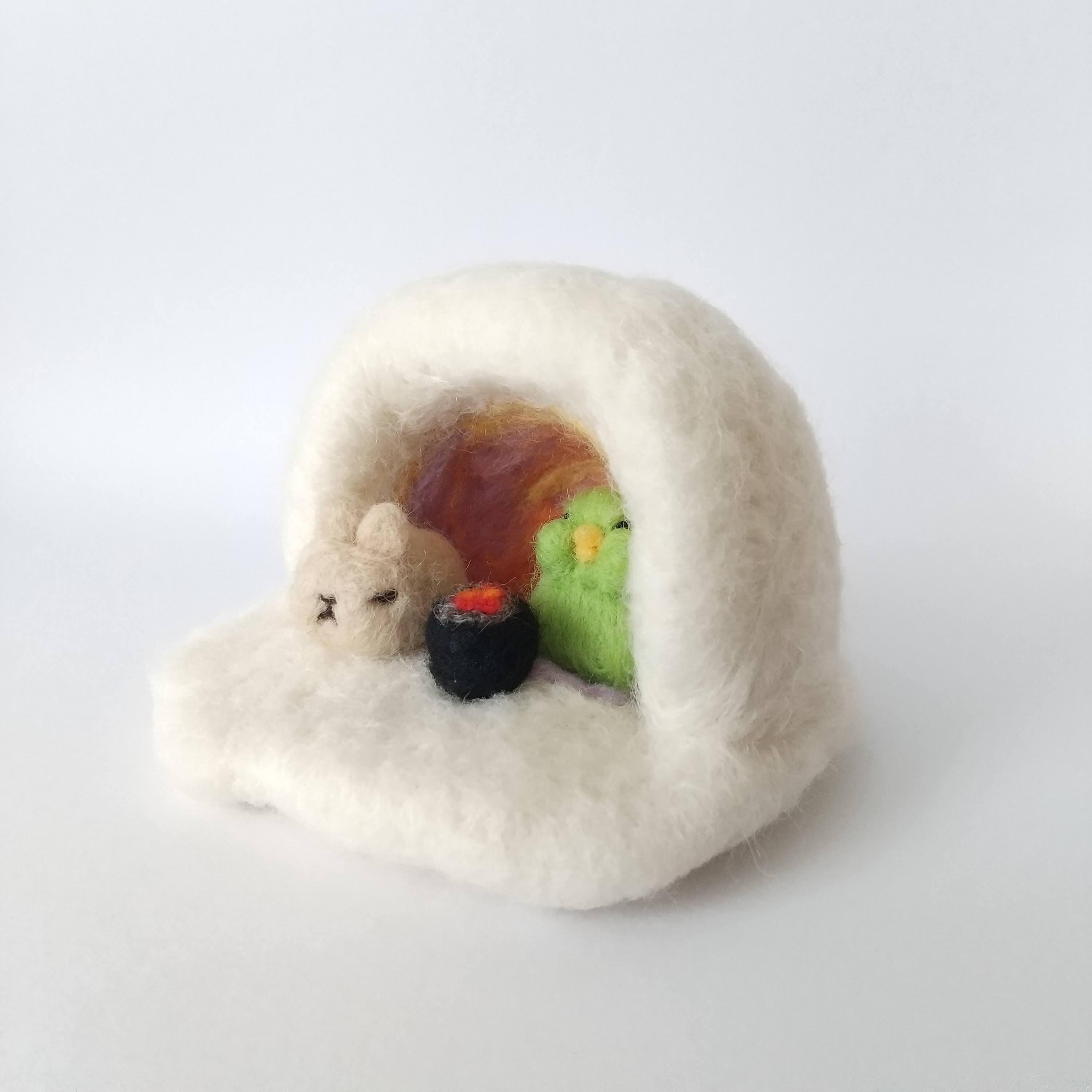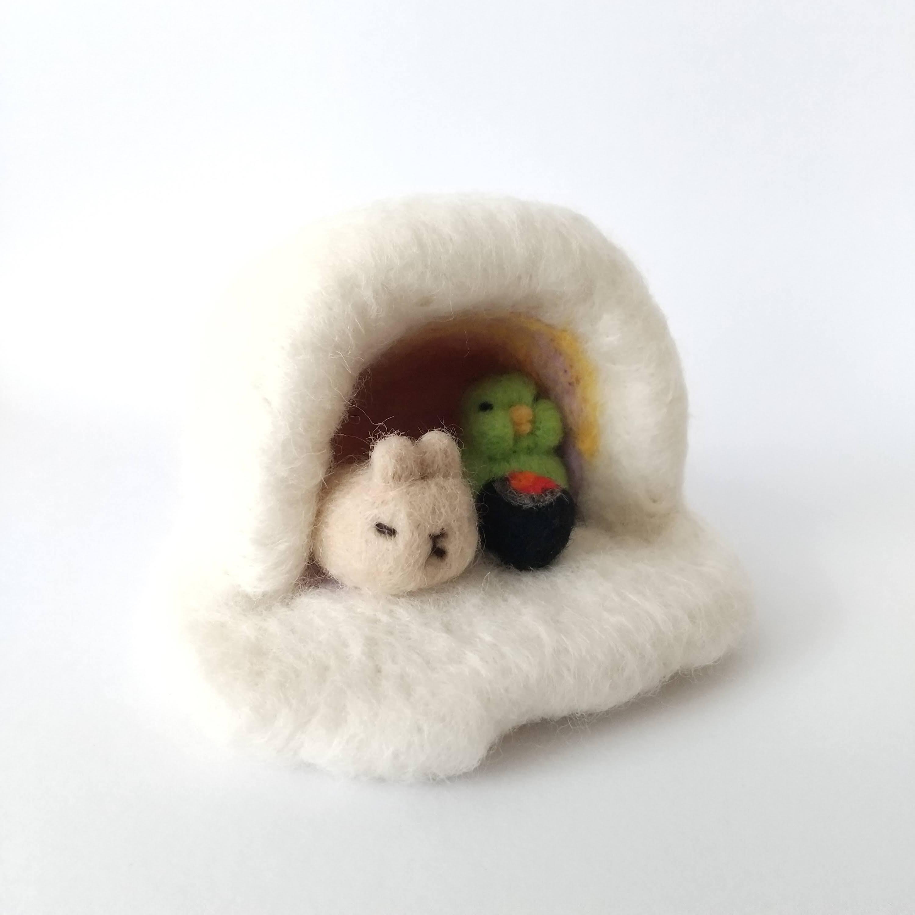 羊毛フエルト ウサコフ&太 かまくらで火鉢