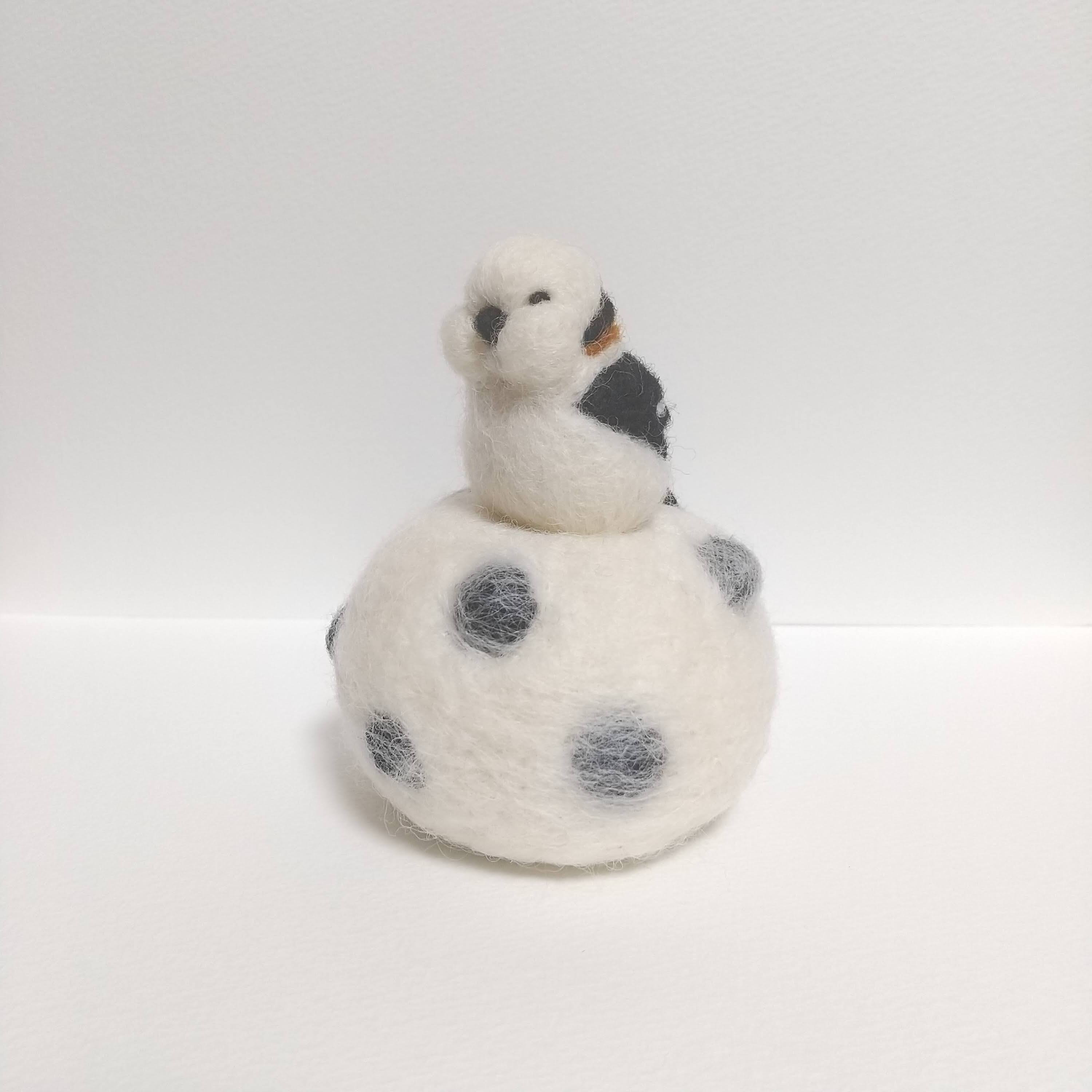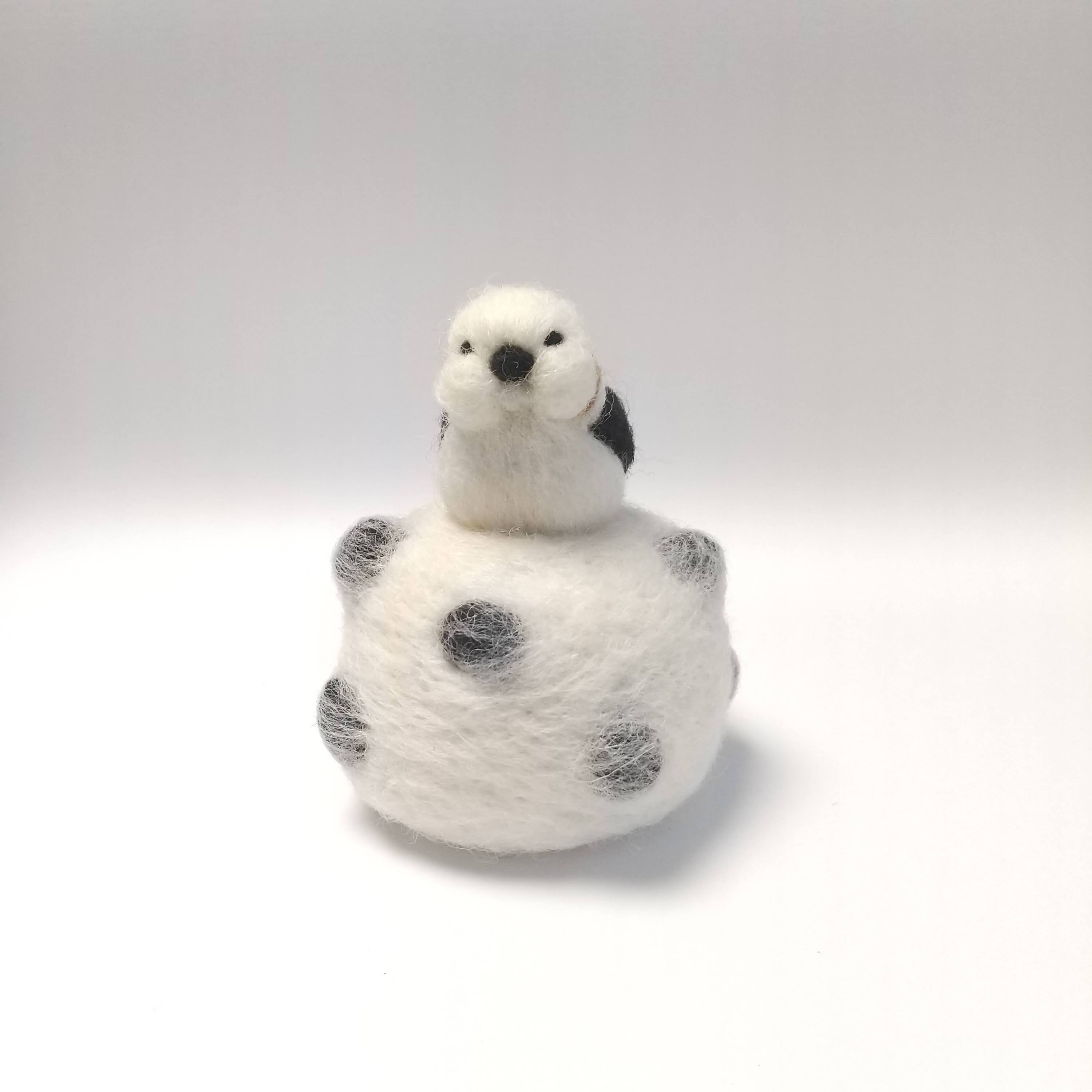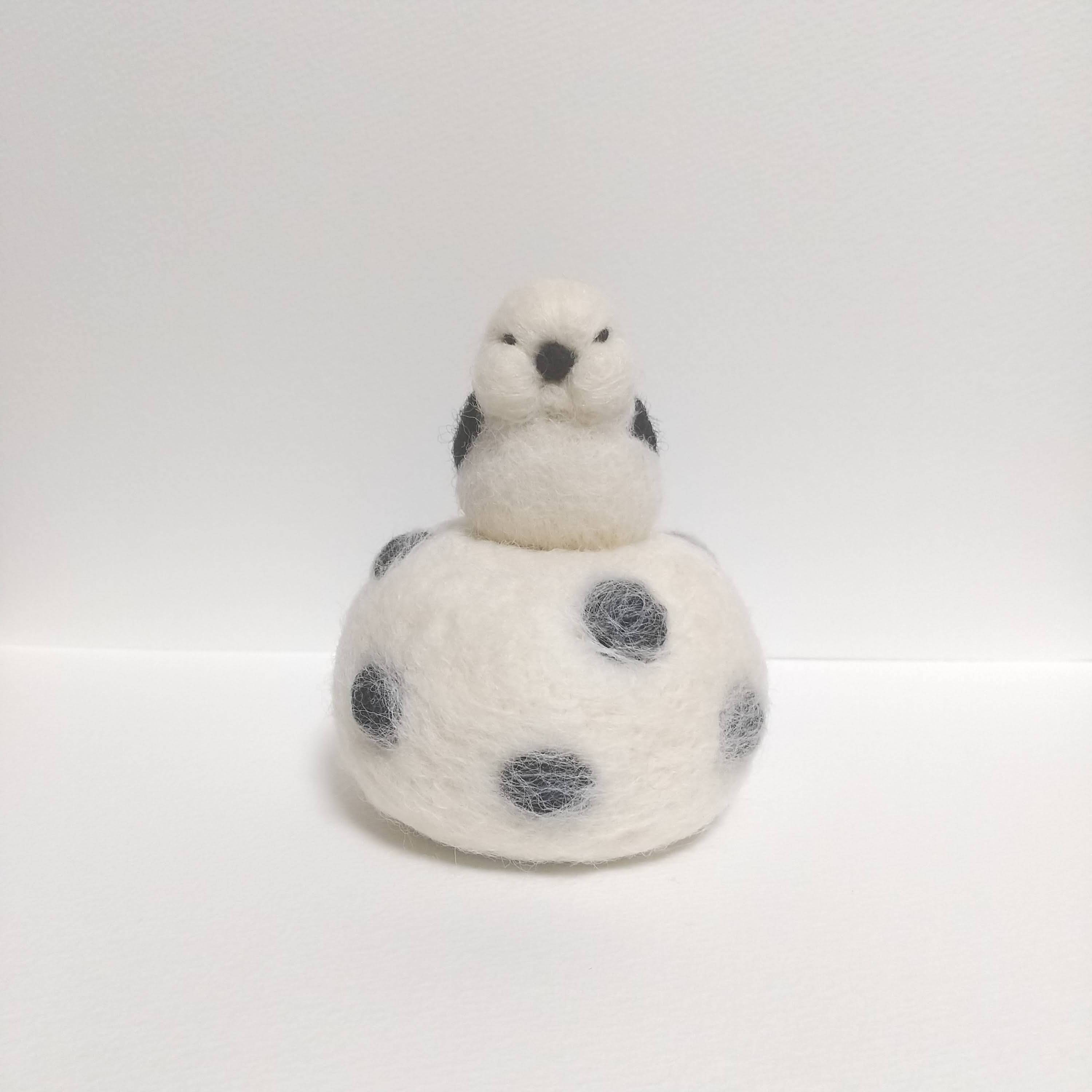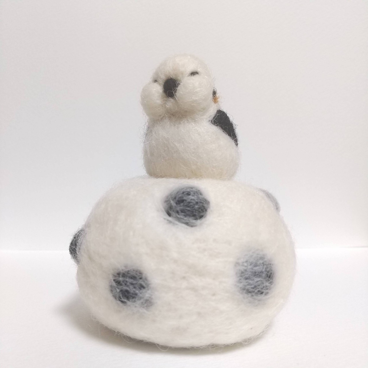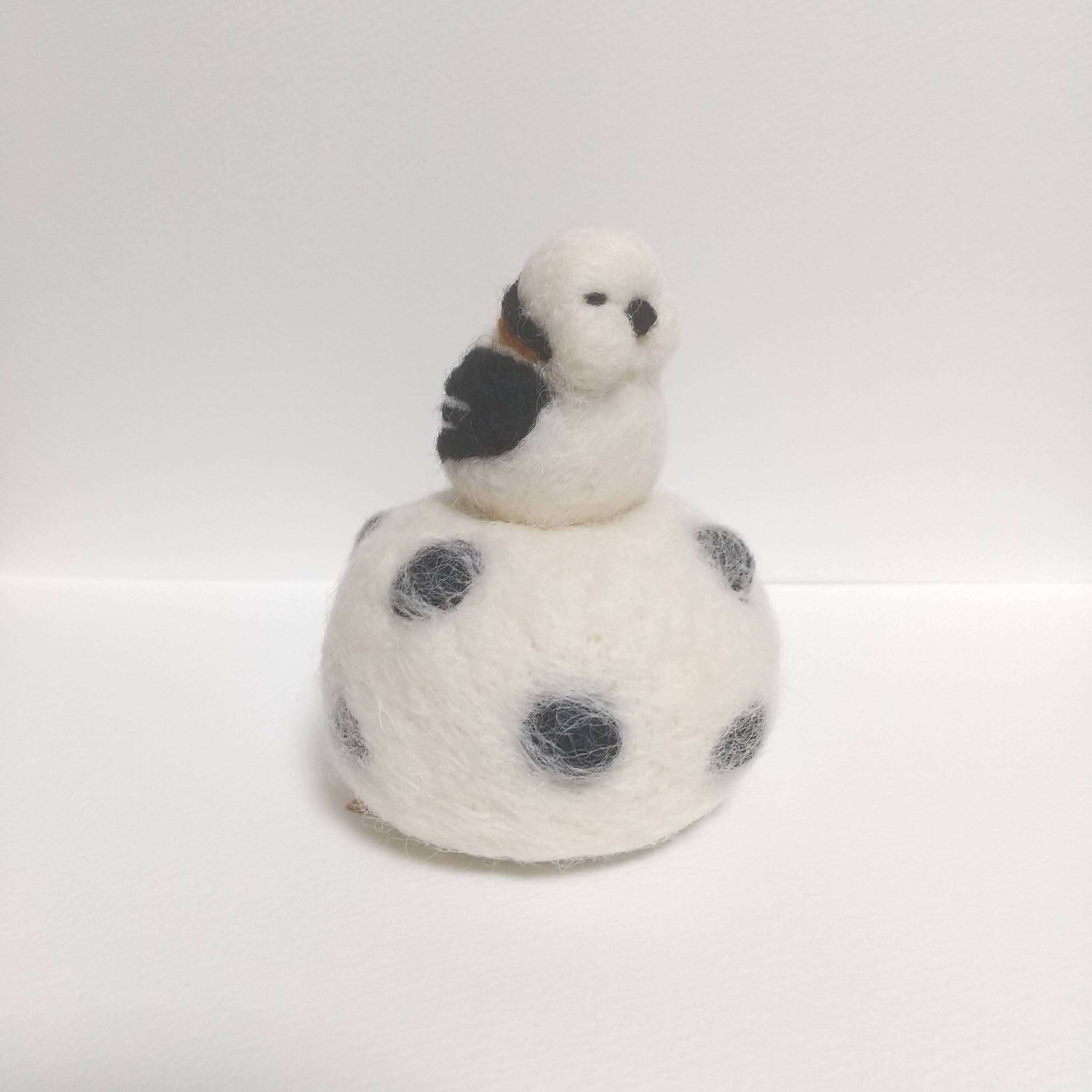 羊毛フエルト フトシマエナガ 豆大福に乗る